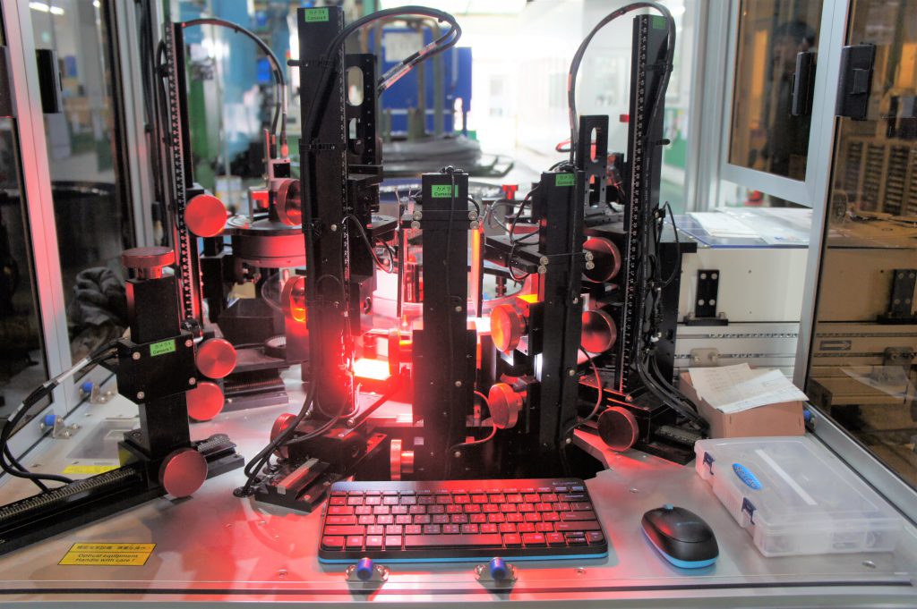 冷間鍛造研究所では、数十万個に及ぶ大ロットの製品に対しても全数検査を基本としており、目視検査以外にも検査機を導入することで提供する量産部品の検査を行っています。当研究所では最近新たに画像検査機を導入し、省人化に加え、検査スピード向上が可能となっています。