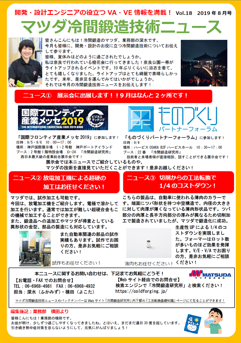 マツダ冷間鍛造技術ニュース 2019年8月号!