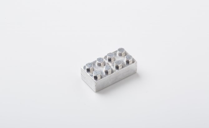形状として真四角形状であり、表面には突起がついた形状となります。玩具として良く見る形状だと思いますが、製作をしてみると難しい形状であると言えます。